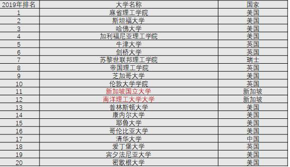 根據2019年QS(Quacquarelli Symonds)排名:新加坡南洋理工大學排名世界第12,亞洲第2。