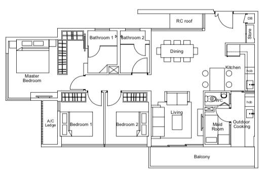 3 Bedroom with maid’s room(三間臥室,帶女傭房)