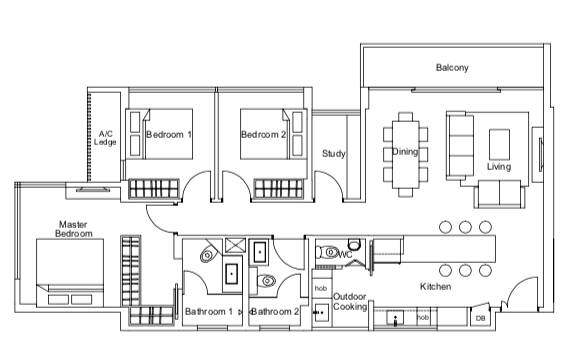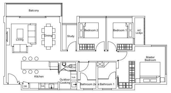 3 Bedroom with study(三間臥室,帶書房)