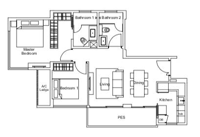 新幣 S$ 起C3戶型2室 1216平方英尺/113平方米