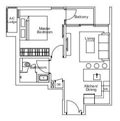 新幣 S$ 起A戶型1室 495平方英尺/45平方米