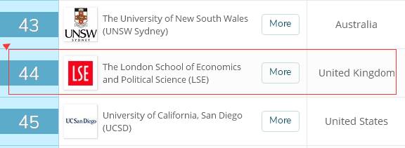 2019-2020 QS世界大學綜合排名中,LES位列全球44,英國大學排名第8位。