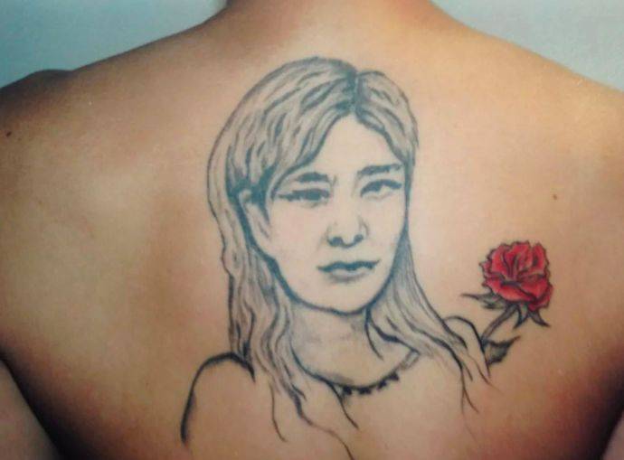 *爲了表達愛意,王志健在背後紋上張孟的畫像