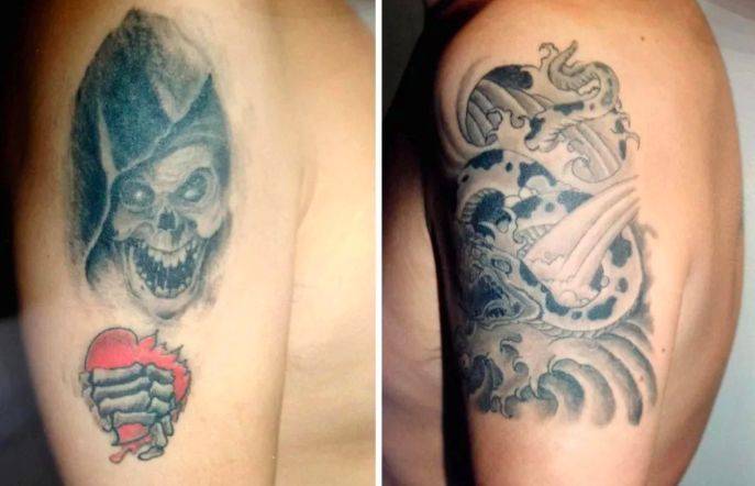 *王志健後來在兩臂上又紋上了骷顱頭和心髒,這代表著張孟的邪惡