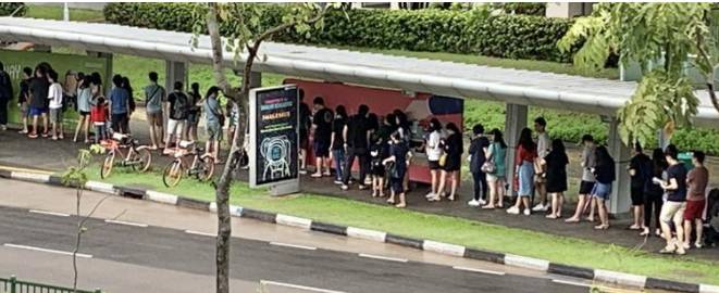 神秘地點會有“門衛”負責分發“通行證”,而在牛車水、老巴刹、明古連地鐵站外等地點分發,有公衆早上10時30分就開始排隊。