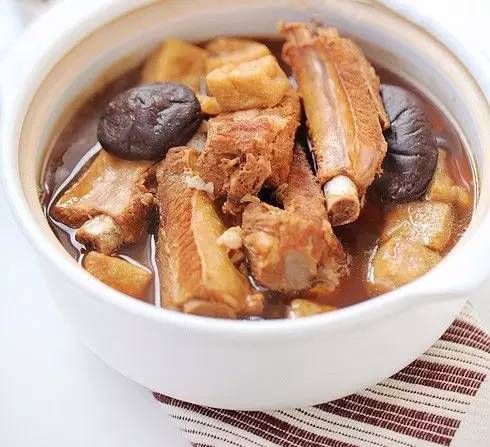 新加坡:肉骨茶是流行東南亞閩粵等地,是一種骨肉兼飲茶的飲食方式。肉骨湯用新鮮排骨,加入各種佐料及藥材熬成,可以邊吃肉骨邊飲茶。肉骨茶,福建語:Bak-Kut-Teh ,風味享譽海內外,深受喜愛。肉骨茶分爲新加坡的海南派及馬來西亞的福建派,海南肉骨茶較重胡椒味,福建肉骨茶較重藥材味。
