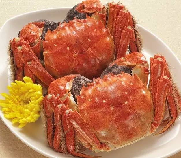 中國:陽澄湖大閘蟹,又名金爪蟹,産于蘇州陽澄湖。蟹身不沾泥,俗稱清水大閘蟹,體大膘肥,青殼白肚,金爪黃毛。肉質膏膩,十肢矯健,每逢金風送爽、菊花盛開之時,正是金爪蟹上市的旺季。農曆9月的雌蟹、10月的雄蟹,性腺發育最佳。煮熟凝結,雌者成金黃色,雄者如白玉狀,滋味鮮美。當地以清蒸大閘蟹做法爲主,口感甜中帶鮮。