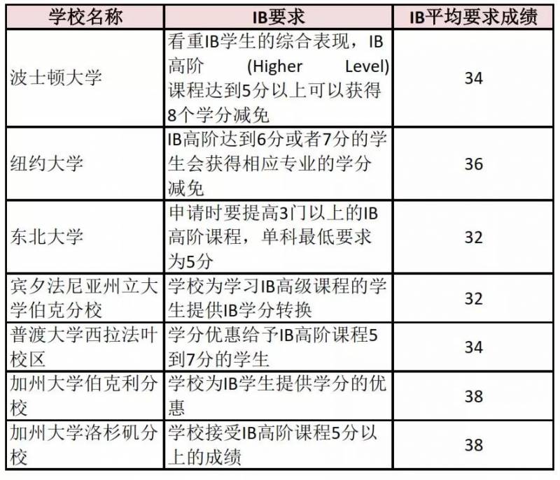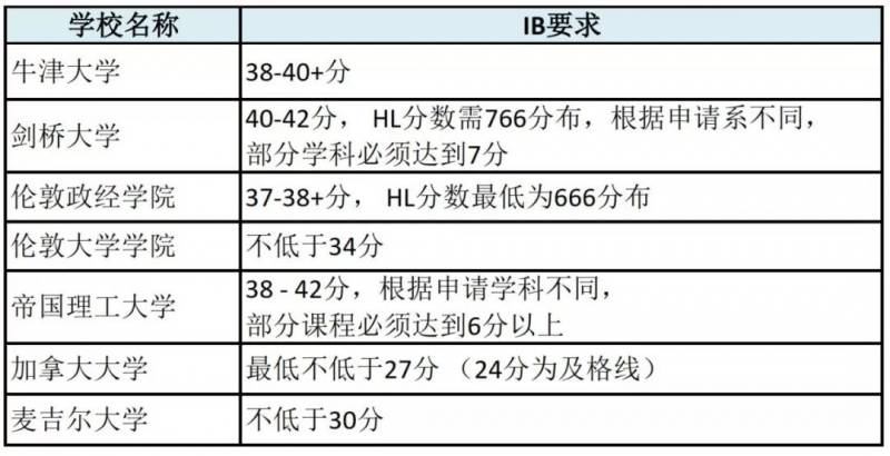 除去部分加州大學把分值規定在了35分左右外,絕大部分美國大學並沒有對具體分數做出規定,IBDP成績是錄取因素裏的其中一項。