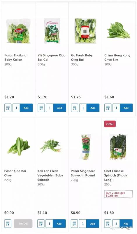 蔬菜通常是200-300g/包,按蔬菜品種不同,約1-2新幣不等(5-10人民幣)。