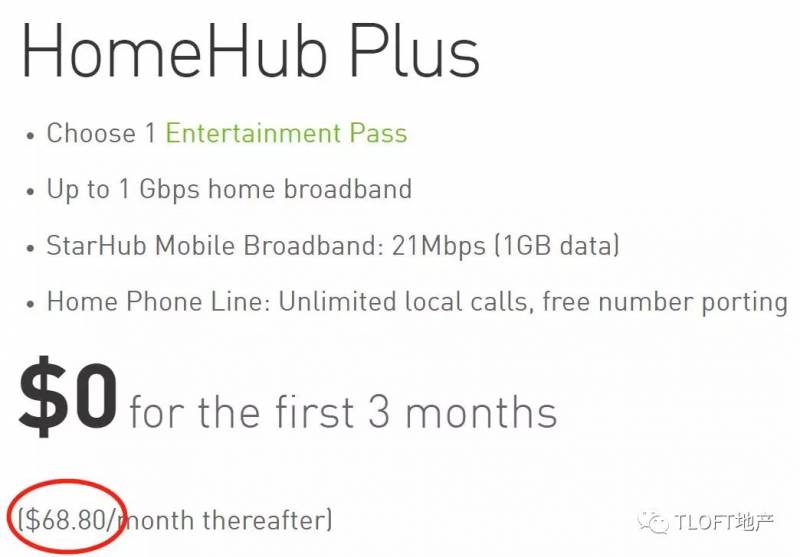 寬帶、電視、座機通常是一個整的套餐,68.8新幣/月,如果只需要寬帶,則價格減半。