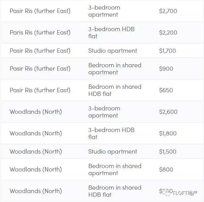 我們以新加坡非市中心的成熟區域來看新加坡每月房租,例如東部和北部。