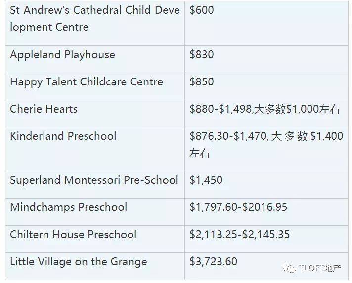 除了半公立,私立幼兒園在新加坡也很受歡迎,以下是新加坡一些主流私立幼兒園的收費情況。
