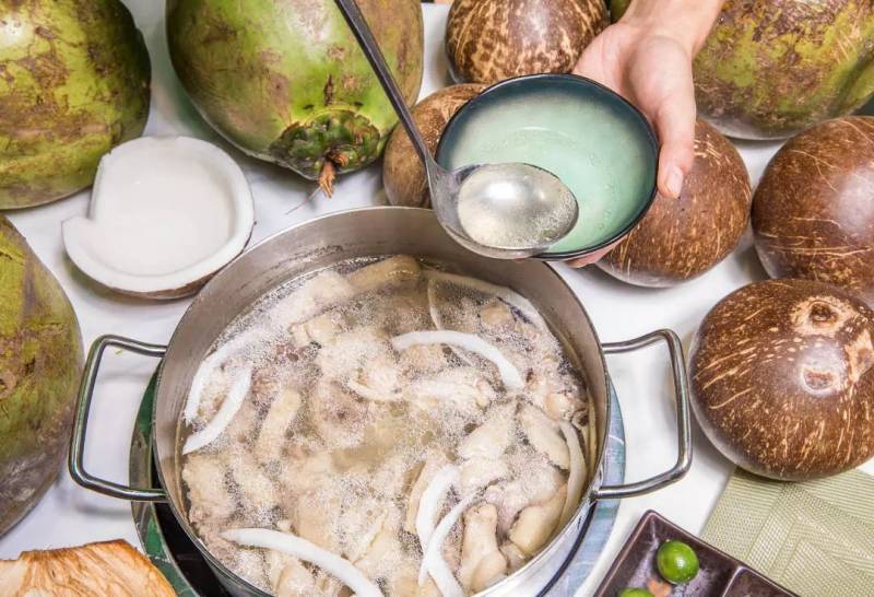 用新鮮的椰漿、帶甜味的海蝦和辛辣的自制辣椒油調制成濃濃的湯汁,配米粉、意面或者其他主食一起食用。
