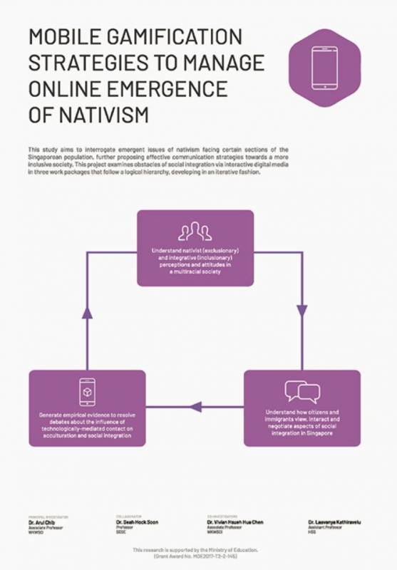 在新加坡多元化族群背景下,應對排外主義和本土主義。移動互聯網的自由也會帶來不同人群的網絡爭端,通過研究社會族群特點,形態,發展方式,進而提出有效的溝通策略,建立更具包容性的社會。