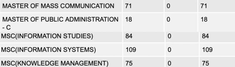 每年,WKWSCI的研究生課程都招收不同的學生。下表是信息和傳媒學院最新的碩博招生人數