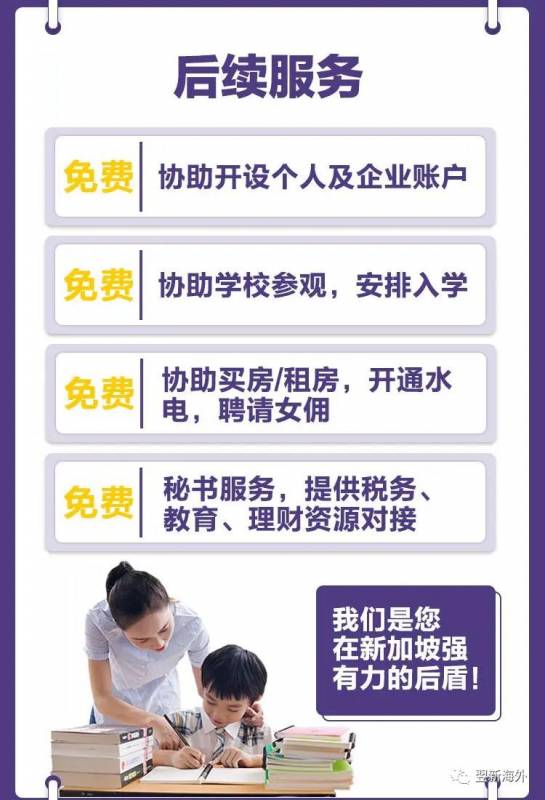 翌新海外作爲最專業的新加坡一站式服務機構,對企業及個人提供衆多專業咨詢、服務與解決方案,包括留學服務、學生寄宿、培訓考察、移民咨詢、公司注冊、財稅服務、商業並購、項目落地及推廣、房産投資、理財規劃、財富傳承等。