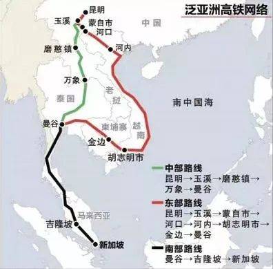 泛亞鐵路東盟段,指的是從我國雲南昆明到新加坡的三條鐵路幹線——分別途徑老撾、越南、泰國、馬來西亞、柬埔寨等多國,最終交彙于新加坡,一旦建成,從昆明坐火車到新加坡,只需要不到十個小時的時間,穩定高效。