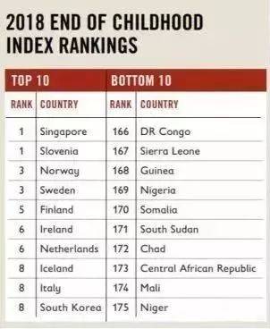 國際非政府組織“救助兒童會”(Save The Children)發布的2018《童年終結數據》報告中,新加坡被評爲最適合孩童成長的國家。