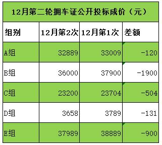 一般用于注冊B組車款的公開組(E組)成價同樣下跌900元(2.3%),報3萬7989元。貨車和巴士組(C組)成價下滑504元(2.1%),報2萬3200元。