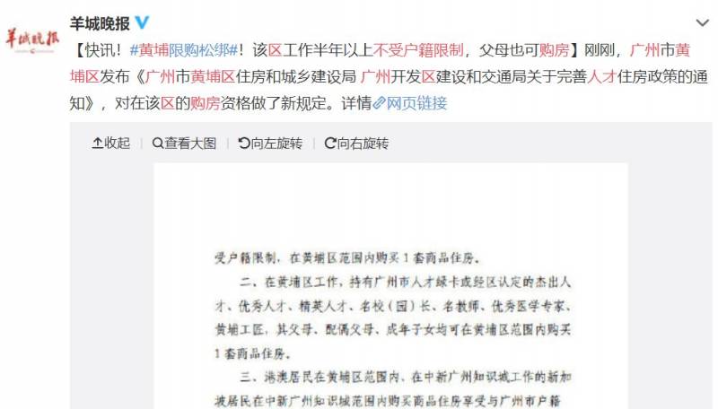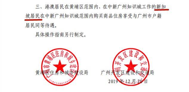 三、港澳居民在黃埔區範圍內、在中新廣州知識城工作的新加坡居民在中新廣州知識城範圍內購買商品住房享受與廣州市戶籍居民同等待遇。