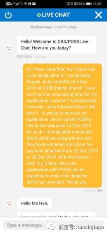 首先要說的是DBS工作人員的不專業。12月5號那天我和我老公(PR,貸款擔保人)是特地拿了一天假去分行辦,要拿號的時候門口的工作人員就說應該要在網上辦的,然後我就說你們的官網明明寫著要帶擔保人和資料去分行辦,他才願意進去幫我問,出來的時候還嘴硬說“by right應該是要在網上辦的,這次我就先幫你拿號好了”。然後交了資料,櫃台的人就告訴我說應該7個工作日就會有結果,到時候沒有收到通知就打去loan department問。沒想到7個工作日之後我打去問才知道這個貸款審批時間是3到4個星期,我就趕緊發郵件去SUSS要求延遲交學費的時間,因爲當時接受offer的時候要求在12月22號之前交學費。第二天就收到SUSS回複最遲要在12月29號前把學費交了。