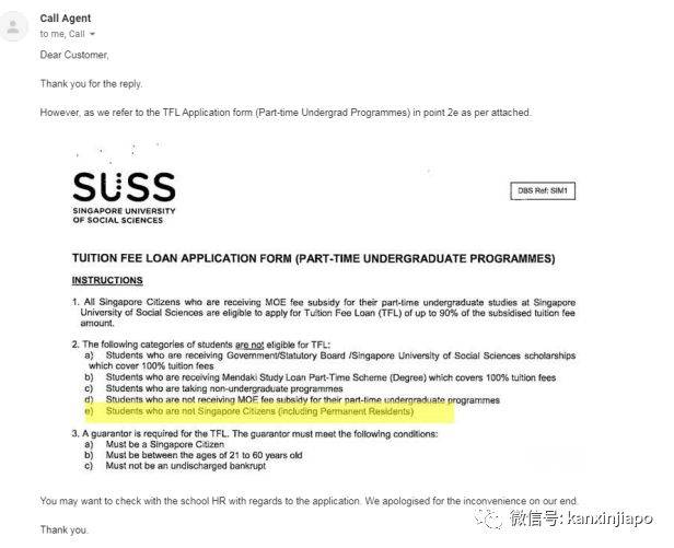 沒想到兩天之後我收到銀行的回複是我的申請被拒了,因爲我是PR,那個貸款只是給新加坡人申請的。我當時就蒙了,馬上把他們的官網回複過去,因爲上面明明寫著如果學生是PR,帶一個PR的擔保人就可以申請。