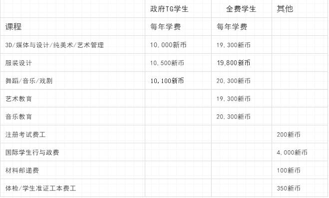 新加坡的藝術院校主要是私立院校,相對來說入學門檻較低,高中、中專、職高都可以報名,對英語的要求也不像其他大學的本科生。