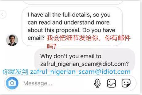 安甯次長直接回複他,你就發到這個郵箱吧:紮魯法_尼日利亞人_詐騙@傻子.com,把這個人怼了一頓。