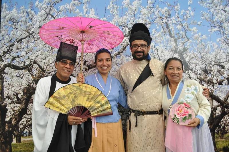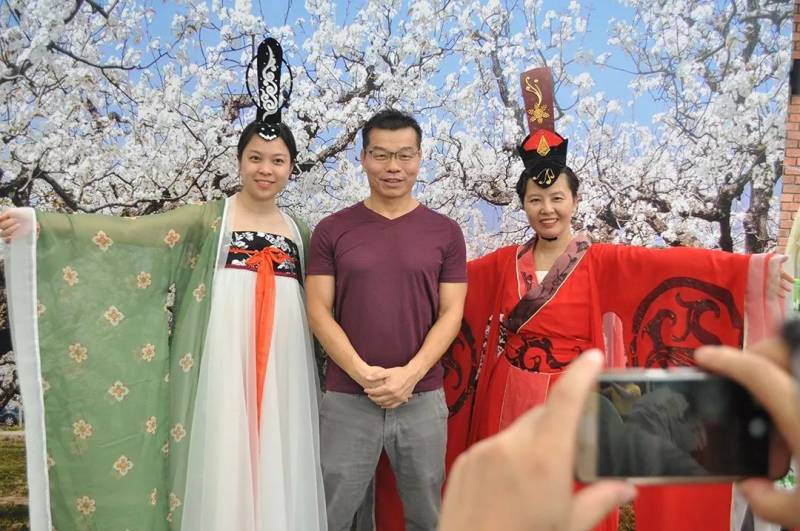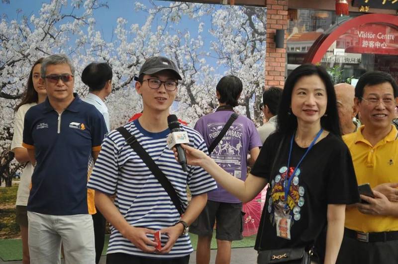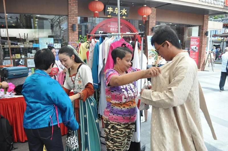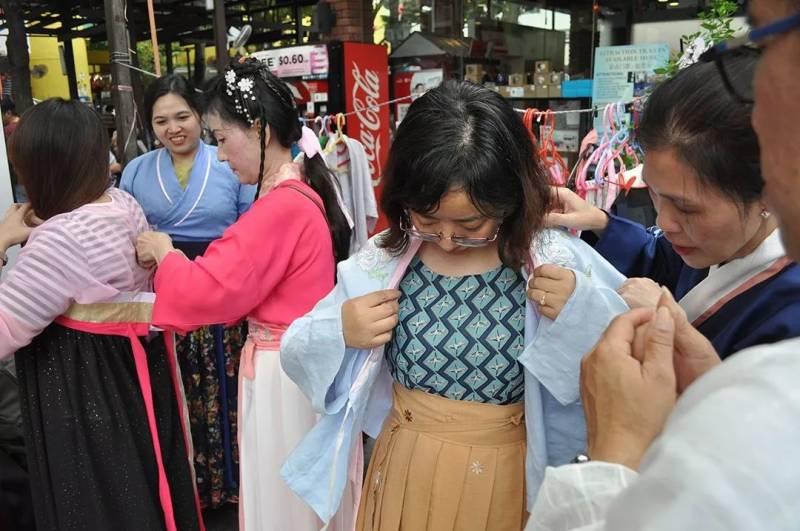 新加坡漢文化協會同時將多套精美的漢服帶來活動現場,讓民衆有機會親身試穿。民衆和旅客輪番變身,更換上漢服再搭配協會准備好的各種道具合影留念,留下美好的漢服初體驗。