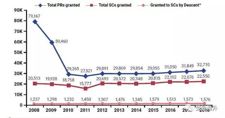 查看近十年的綠卡批複數據,從2009年開始政府大幅削減批複數量,但實際上近十年隨著新加坡的優勢越來越備受認可,申請人數一直在逐年遞增。