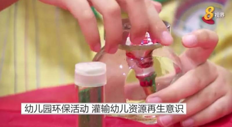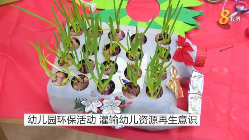 在聖誕這樣盛大的節日,新加坡幼兒園也在積極的給孩子灌輸資源再生的環保意識,比如把果醬罐子變成水晶聖誕球,或者在清潔劑罐子上種洋蔥。