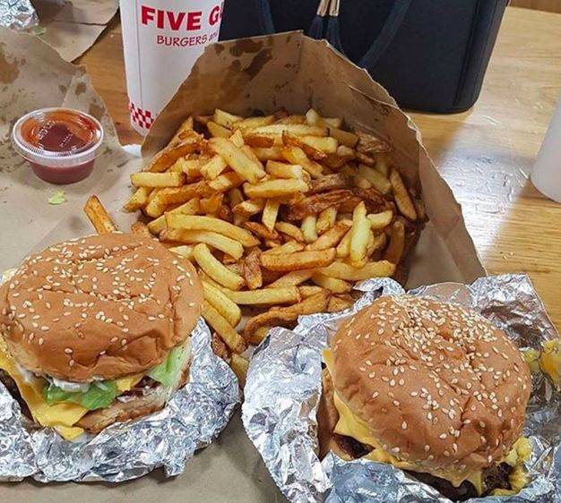 獅城的菜單種類跟其他店並無太大區別,有漢堡、熱狗、薯條、奶昔等等。Five Guys的過人之處是只用新鮮的牛肉餅,還有花生油,這樣做出來的肉餅格外的香。