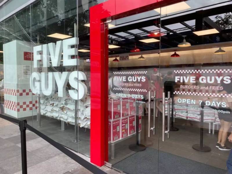 Five guys非常好找,店門正對著馬路,就在Plaza Singapura的一樓,同時還有一扇門,跟mall相連,很方便,逛累了就來吃漢堡吧。說起Five Guys的曆史,1986年,夫婦Jerry和Janie開了一個簡單的漢堡店,當時這對夫妻已經有了四個兒子,加上爸爸Jerry,因此就有了Five Guys這個名字的由來。