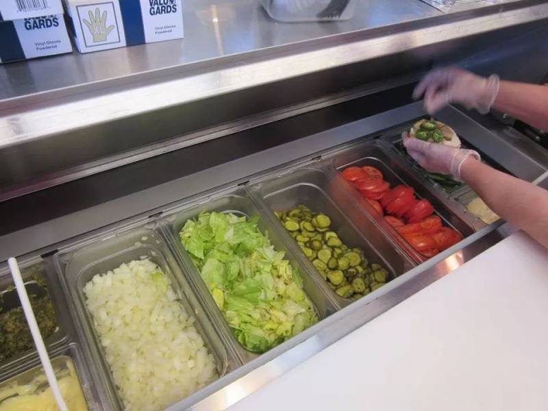 而且,最最最重要的是,你可以自己選擇裏面的料,完全customize。配料有生菜,酸黃瓜,番茄,烤洋蔥,蘑菇,番茄醬,芥末醬,辣醬等。你可以選擇“All the Way”,所有的配料都要。再挑剔的食客,也會有中意的一款搭配。