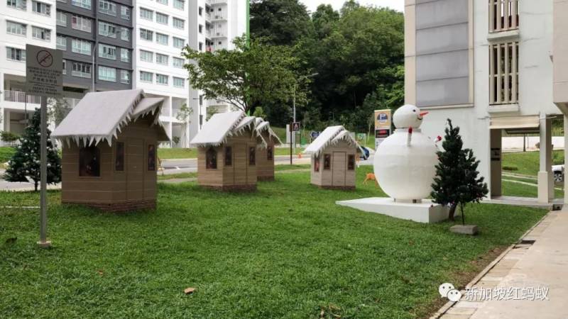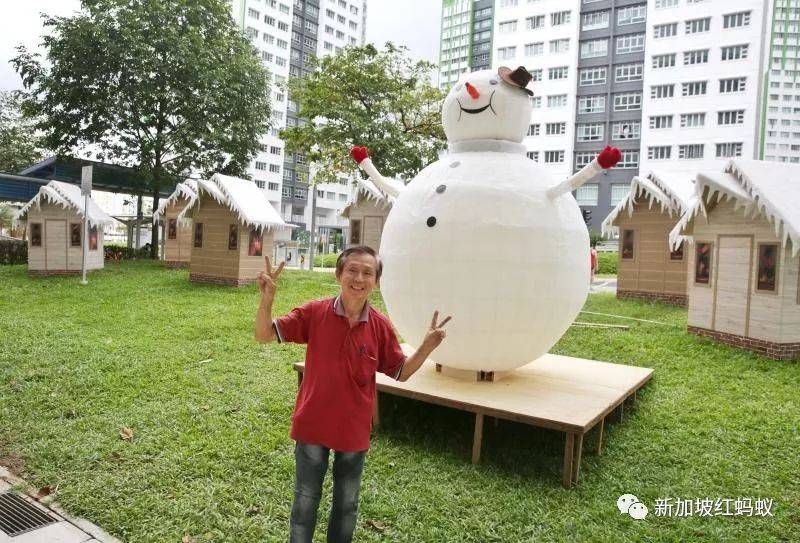 除了木屋,陳孔達也打造了小矮人和大雪人,形成強烈的對比,過後還想在組屋底層圍上不同顔色的彩帶,作爲聖誕佳節的裝飾。