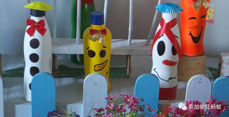 這些有著古靈精怪“表情”的裝飾品全都是一個個塑料瓶,但如今他們換上了新衣裳,搖身一變成了可愛又經費極低的聖誕節裝飾品。