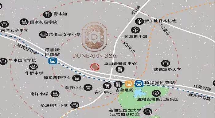 Dunearn 386位于第11區的武吉知馬區(Bukit Timah),這裏是屬于新加坡的核心中央區。武吉知馬屬于新加坡其中一個高檔住宅區。這個地區有爲數不少的洋房(獨立式洋房或半獨立式洋房)和高檔的私人公寓。項目的位置是在杜尼安路(Dunearn Road)和賜福路(Shelford Road)的中間。