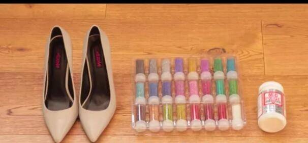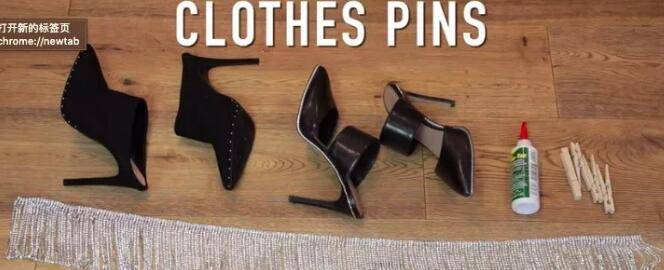 准備一雙基礎款式的高跟涼鞋,一些硬網帶,以及熱熔膠和緞帶即可。