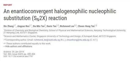 2019年1月25日,《Science》在線發表了南洋理工大學陳俊豐教授(Prof. Tan Choon Hong)團隊在有機不對稱催化領域手性聚焦反應的最新研究成果。該工作首次發現並報道了手性胍鹽陽離子催化的不對稱親鹵性親核取代反應。