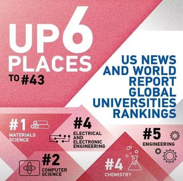 在今年最新的US news世界大學排名中,NTU延續往年的勢頭,繼續前進6名,排名第43位,並有5門學科排進前五。同時,在亞洲大學的排名中也排在第3位。