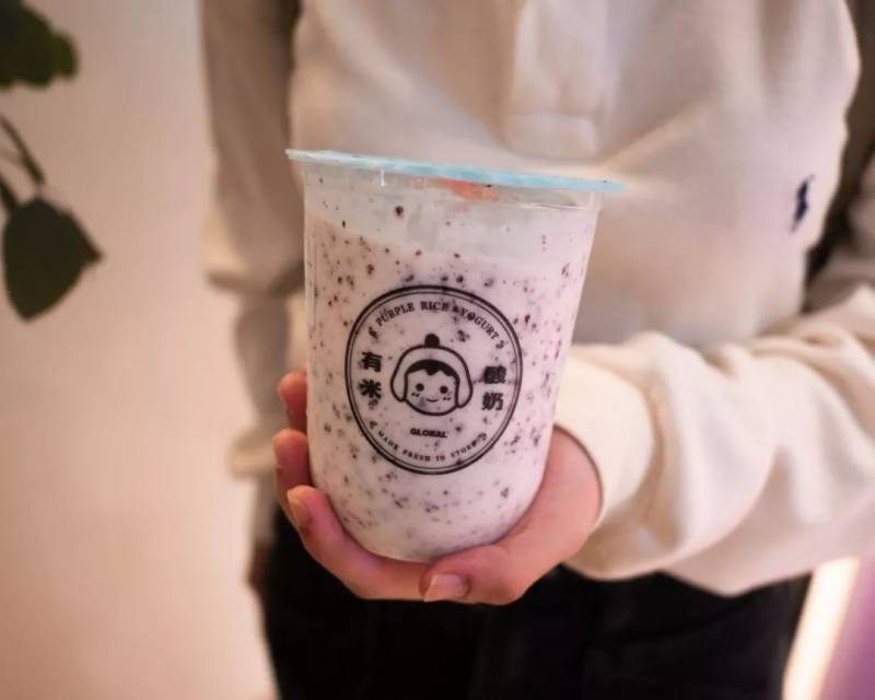 他們家的招牌是紫米酸奶。紫米粒黏膩有嚼勁,配上酸奶細膩滑口的口感,喝的時候能感受到天然的甜味和紫米的香氣。