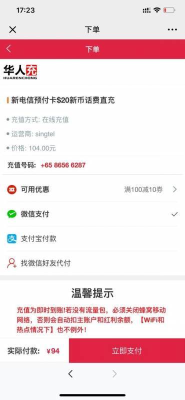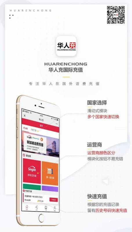 “華人充”是新加坡中文預付卡充值微信公衆號,致力于給新加坡華人最簡單,最方便的在線充值,以及在線微信紅包充值服務。
