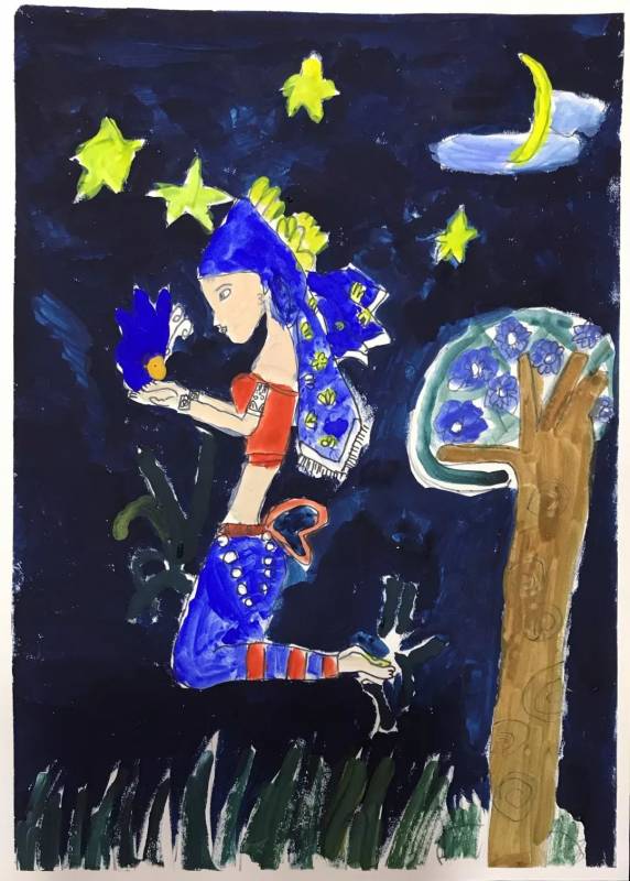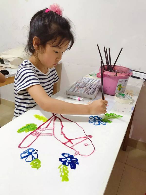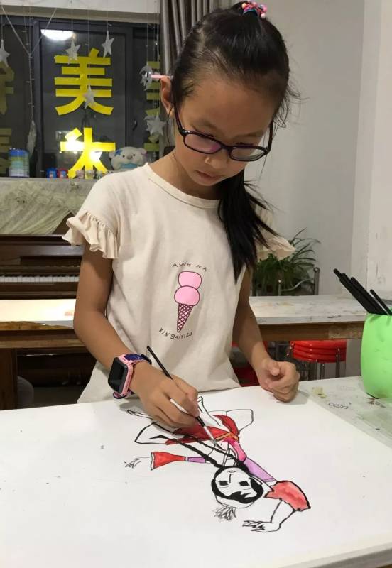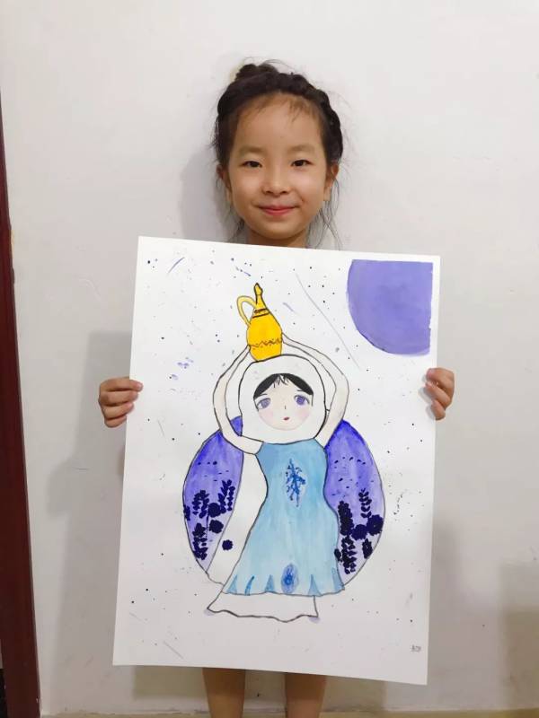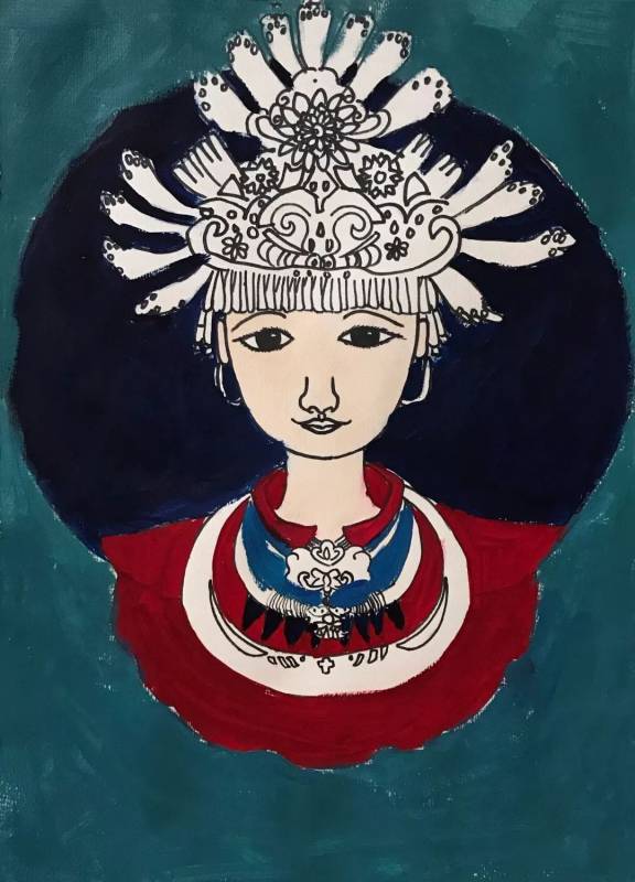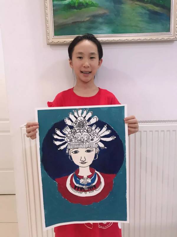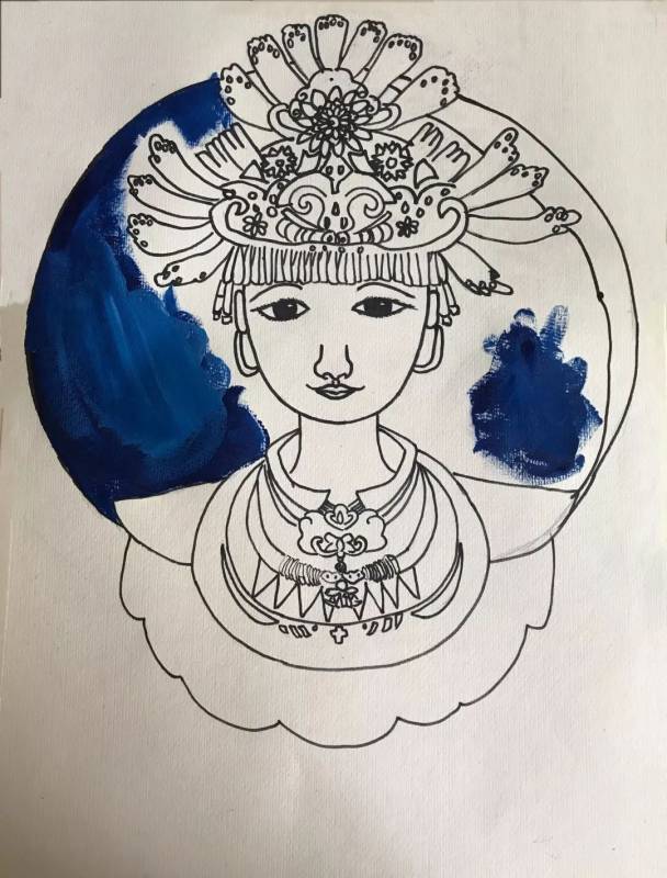 接下來的手繪課我們選擇自己喜愛的民族圖案,設計民族風情插畫,穿戴民族服飾的維吾爾族、回族、苗族、傣族小姑娘躍然紙上。