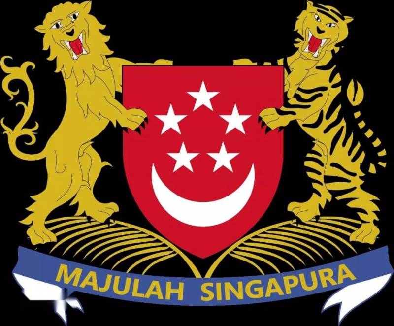 新加坡國徽由盾徽、獅子、老虎等圖案組成。紅色的盾面上鑲有白色的新月和五角星,其寓意與國旗相同。紅盾左側是一頭獅子,這是新加坡的象征,新加坡在馬來語中是“獅子城”的意思;右側是一只老虎,象征新加坡與馬來西亞之間曆史上的聯系。紅盾下方爲金色的棕榈枝葉,底部的藍色飾帶上用馬來文寫著“前進吧,新加坡!”