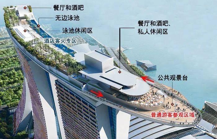 位于濱海灣的新加坡金沙娛樂城設有賭場、歌劇院、藝術科學博物館、會議中心與展覽設施、零售商和多樣化的餐館等,共6大建築系列。在高達55層樓的酒店內,擁有2,561個房間。爲酒店冠上榮耀之光的,是位于第57樓的金沙空中花園,這座占地一公頃的空中綠洲將彙集蔥茏的綠蔭、雅致的花園,甚至一座無邊泳池。站在這裏,就如登臨世界之巅。