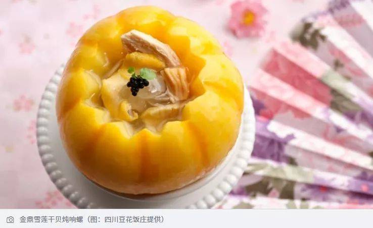 PARKROYALon Kitchener Road的總廚梁永祥來自香港,擅長粵菜,他采用金瓜盅盛放響螺和雞肉等配料,加上滋補的雪蓮,慢火炖煮4小時,帶出自然的鮮甜的金鼎雪蓮幹貝炖響螺,不僅好喝,還好吃~