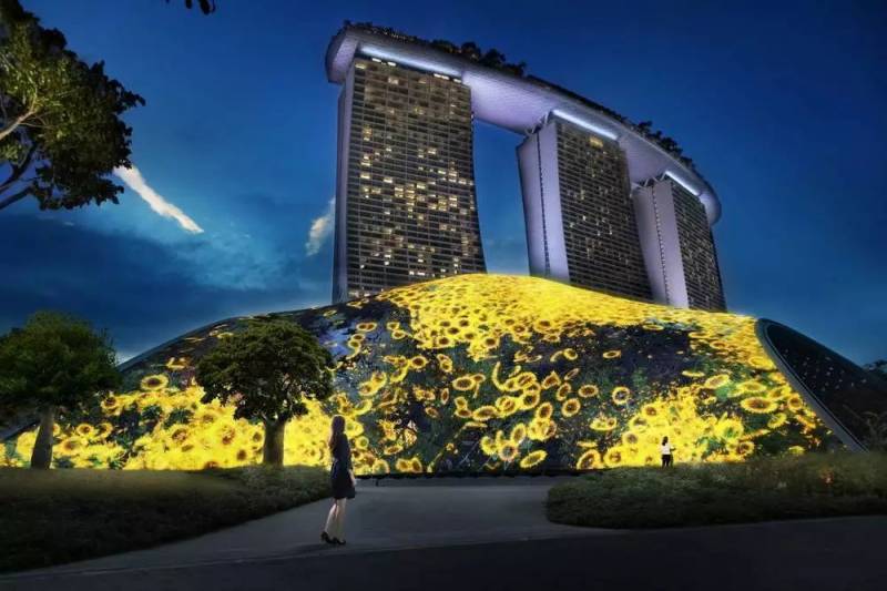 本次燈展分爲室內和室外兩部分。室外運用了高科技AR技術,五彩缤紛的鵝蛋形彩燈漂浮在濱海灣的湖面上,金沙的迷人燈光更是壯觀。
