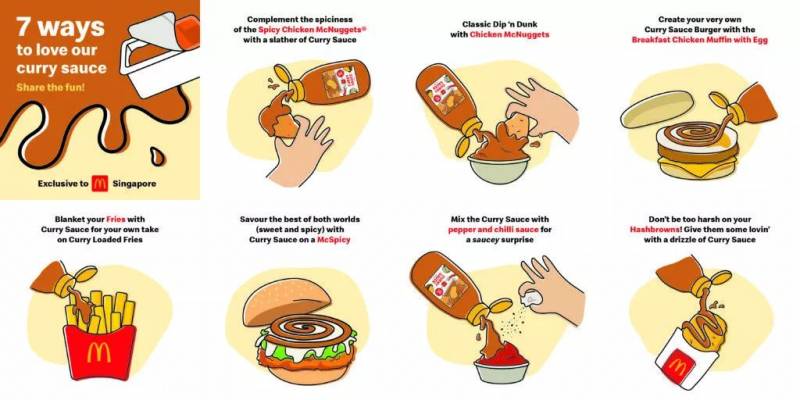 首先是可搭萬物的咖喱醬,陪雞塊或者薯條都是極好的,售價爲$5.50,下圖有各種參考吃法哦:
