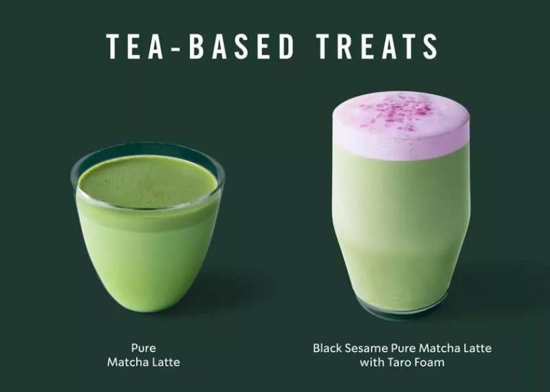 這次上新還有Pure Matcha Latte,純正的抹茶拿鐵,抹茶控們有口福了。接下來的這款新品十分有趣,Black Sesame Pure Matcha Latte with Taro Foam。抹茶和黑芝麻醬這兩種看似完全沒有關系的食材被巧妙的搭配在一起,再配上淡紫色的Taro Foam,口感十分獨特。