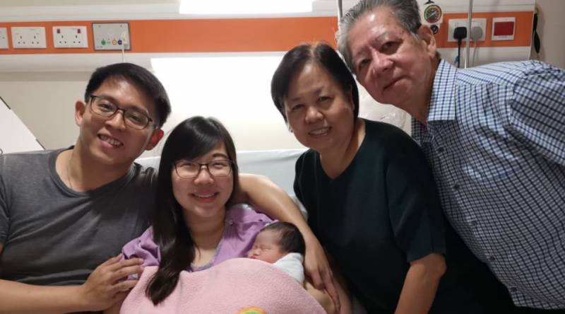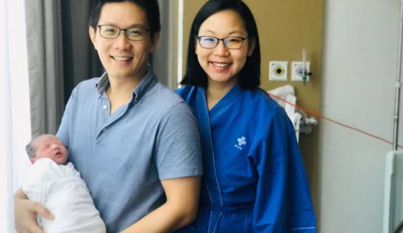 我們昨天3點多來到醫院,然後她5點46分羊水就破了,我們就等了差不過7個鍾頭到晚上12點,零零零零零零,孩子就出生了。”
